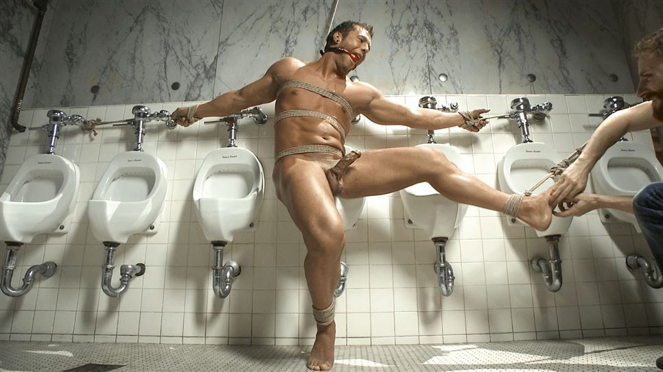 Official Synopsis: Rod Peterson may look like your typical straight jock, but he still takes his education seriously. As Rod pours through his anatomy homework, Sebastian comes by the reading room and starts perving on him. Annoyed by Sebastians advances, Rod retreats to a secluded bathroom. Just when Rod thinks hes finally alone, Sebastian tackles the stud and binds him in the center of the room. Rod is jerked, blown, massaged by hitachis and fucked with a plunger, but never allowed to cum. His muscles bulge under the ropes, moaning louder with each successive edge. Sebastian moves Rod over to the urinals as Rods boner rages. Rod has his feet worshipped and cock worked with a vibrating cock sleeve, making a mess all over himself as he drools from the ball gag. Sebastian finally feels generous enough to let the stud blow his load, but not without having the straight boy taste his own cum.