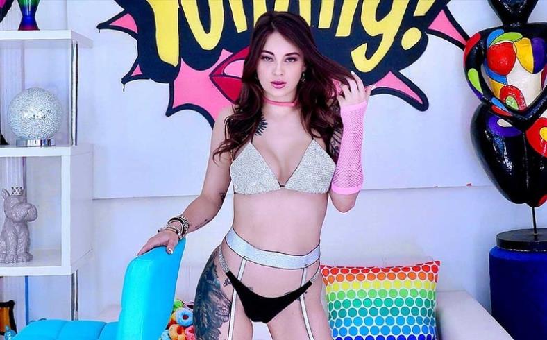 Skinny Ellis Baileys Weighing Only 38 Kilograms is Fucked in her Small Ass with Big Gape and Get Cum in Mouth VG046
