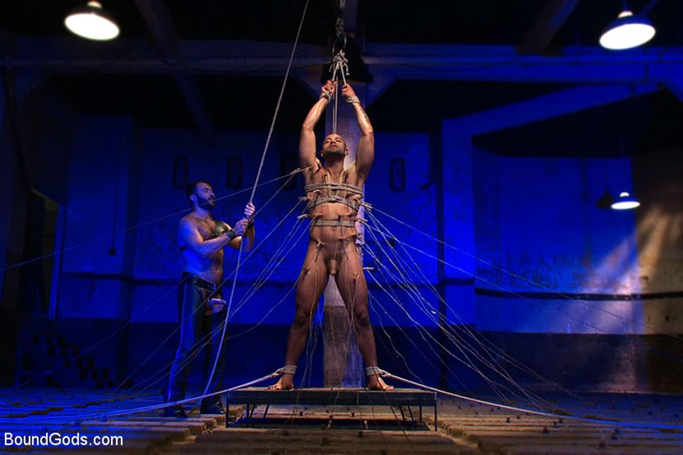 Official Synopsis: Leo Forte hangs under his own power under the watchful eye of his dom Wilfried Knight. When Leo loses his grip its time for Wilfried to test him. He crops Leo as he makes the boy worship his leather. After a good cock sucking the real challenge can begin. In full bondage Leos balls are pulled yanking him off the ground. Then in one of the most daring zippers youll ever see Leo has clothespins clipped to him and tied off all around the room. Wilfried suspends Leo ripping the clips off and sending Leo into sub-space. When the boy returns Wilfried rewards with him with a hard flogging and an even harder fuck. Leo ends the session covered in both their loads.