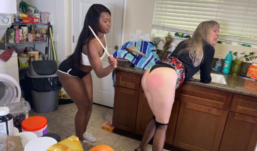 Official Synopsis: Tessa Thomas was the student in charge of cooking for the sorority. But teacher Clare Fonda burned the food that Tessa was cooking. Clare is in for a spanking and she knows it. She bends over the kitchen counter and receives a sound spanking from this athletic hottie that includes her hand and some kitchen implements.