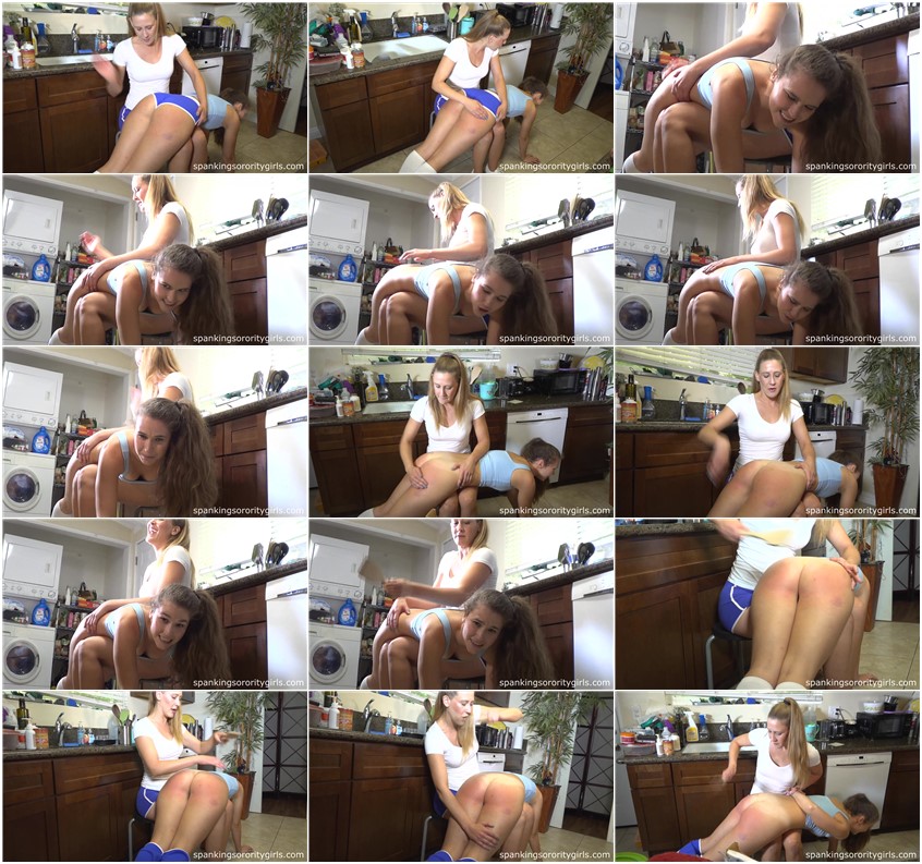 Official Synopsis: Sky Terrapin had warned Lexi Holland what would happen if Lexi went around telling the other sorority girls that she got to spank Sky. Now Sky finds Lexi in the kitchen, where she puts her over her knee for a painful spanking with her hand, plus a wooden spatula that leaves that famous bottom sore and bright red.