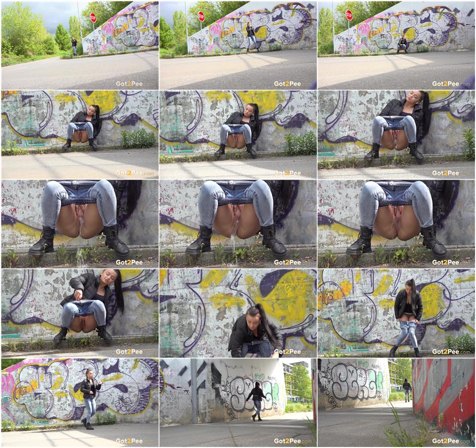 Official Synopsis: Cute brunette Mistika is walking through some wasteland when she decides to relieve her pee desperation. She walks over to an abandoned tyre and squatting to pee, Mistika lets her golden juices flow down onto the ground while we film her for !