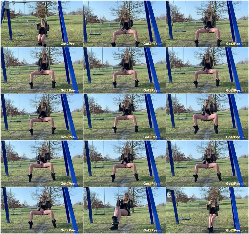 Official Synopsis: Today on Claudia Macc is back and this blonde babe is feeling playful as she sits on the swings in the park with no panties on! How naughty! She opens her legs and shows off her pussy while spraying her golden piss down onto the ground. This public piss is one of our favourites here at !