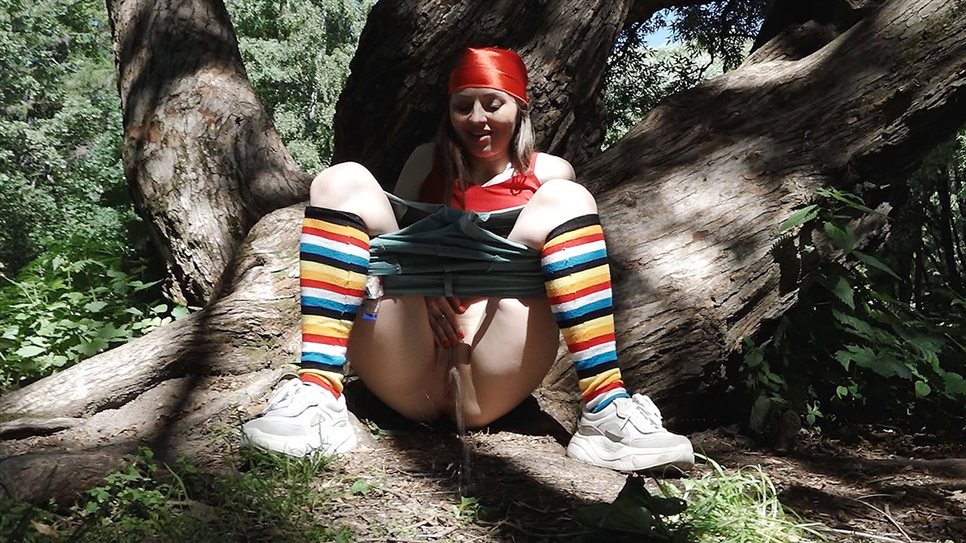 Official Synopsis: Brunette babe Sasha rushes down a dirt track and looks for a place to relieve her pee desperation. She heads underneath a road barrier and while keeping a lookout, this babe pulls down her denims. Squatting to pee, Sasha sprays her piss stream down over the ground while we zoom in close for .