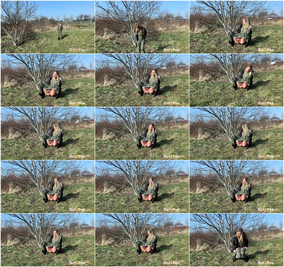 Official Synopsis: Our newest scene features a hot blonde European who rushes down a bank to some big stones while keeping a lookout. She notices someone in the background but her piss desperation isn't going to stop anytime soon so squatting to pee on the rocks, this beauty lets herself go!
