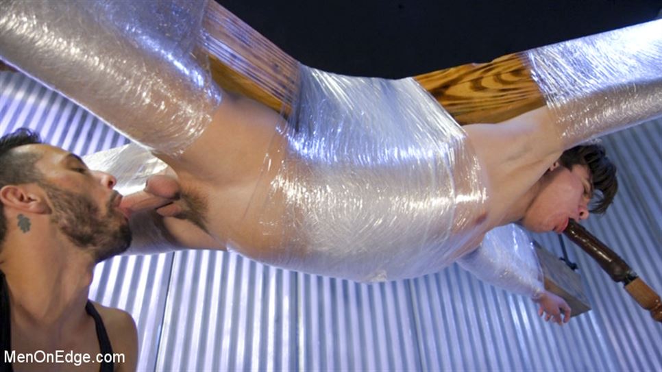 Official Synopsis: On top of a wooden cross suspended by ropes in what appears to be some kind of shipping container, Josh Hunter lays asleep, strapped to it with a multitude of leather belts, wearing only underwear and a bit-gag. When he wakes up, he struggles and yells for help but no one can hear him. His captors, Sebastian Keys and Chance Summerlin enter the room and run their hands up and down Joshs slim hairless athletic body. His cries for help turn into moans of pleasure when Sebastian cuts Joshs underwear off and starts playing with his already hard cock. Chance sucks the pre-cum off of his cock while Sebastian pulls on his balls. Josh gets really close to cumming several times but Sebastian and Chance...