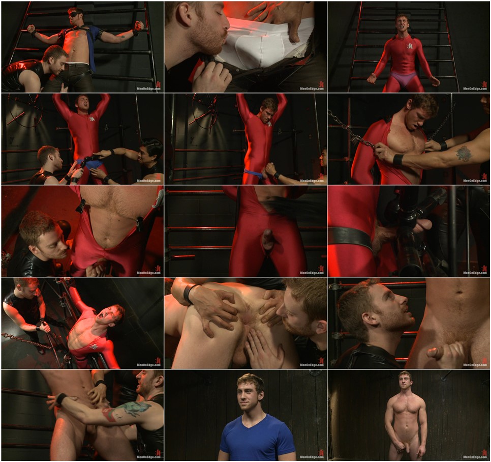Official Synopsis: Teddy Bryce is a muscled, heavily tattooed stud, ready to be completely restrained while two dudes work his rock hard cock. Hes gagged and duct-taped to a wall in a mock crucifix position, while Sebastian and Dominic start working him through his clothes. They soon cut him out of them, releasing his desperately hard dick. They suck him and jerk him, all while hes kept completely immobile, standing on a tiny stool barely the size of his feet. They use a jerk-off toy on him bringing him to the edge of orgasm repeatedly, then stopping right before he cums. Hes then put in pipe bondage, bent over with his ass out and a bar gag in his mouth. Sebastian and Dominic work his hard dick, making him alm...